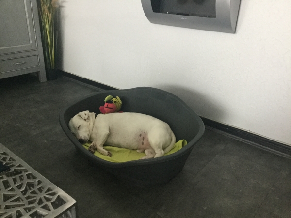 La belle Laika est jeune et dynamique et notre petit Tango devient vieux et dort beaucoup. Lorsqu?il est en balade (3 fois/j) il rajeunit de 10 ans, surtout s?il croise un petit chat ?