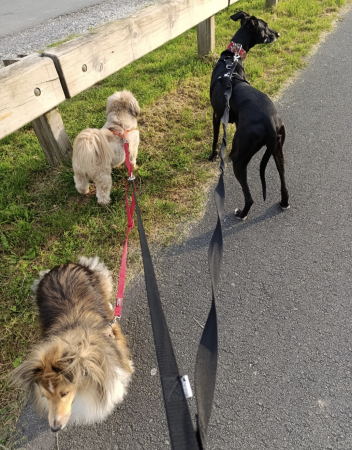 Riri , aidé par une petite piqûre pour son arthrose, conserve une excellente forme et un beau poil, a toujours un excellent appétit et apprécie une bonne gamelle spécialement préparée pour lui, compte tenu qu'il n'a plus beaucoup de dents. Il est sourd et depuis il aboie un peu plus souvent, notamment le matin pour m'indiquer qu'il est temps (pour lui) de me lever !! Il a 2 copines, une berger des Schetland de 8 ans qui n'a jamais servi qu'à la reproduction et une galga de 6 ans également adoptée et ainsi sauvée de son triste sort en Espagne et les 3 compères s'entendent à merveille et adorent les balades !
