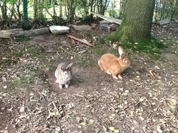 Comme promis nous vous envoyons un petit coucou de notre nouvelle maison où nous profitons des joies de la vie de lapin : " verdure à volonté, petite sieste, bain de soleil, toilettage, petite sortie furtive entre potes chez les voisins toujours commanditée par Coby bien sûr, sans oublier notre séance quotidienne de confection de tunnel au grand désespoir de Cath et Greg qui ne savent plus quoi faire pour contrer nos petits trous sous le grillage du jardin...mais nous sommes si bien les pattes dans l herbe.". Et voilà , notre quotidien !!!