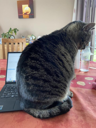 Bridget est beaucoup plus calme et discrète, un peu précieuse parfois. Elle aime les endroits cosy comme les dessous de couette, ou se cacher dans des cartons. Elle est très douce et sage.