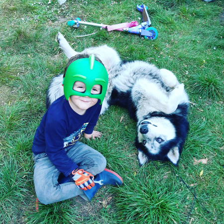 Des petites nouvelles de Bandy. Il écoute bien et ils se sont adoptés mutuellement avec les enfants. On l'a laissé dans le salon pendant la nuit mais vers 2h ce petit chenapan est venu dormir au pied de notre lit.