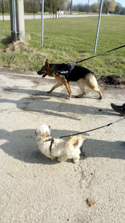 Il a déjà rencontré plusieurs autres personnes et chiens avec qui il s'entend toujours bien.