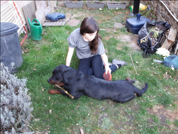 Voici notre Buffy en pleine séance de jeu avec mon fils 😊