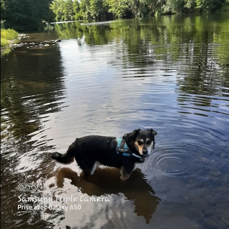 Popeye pose après son petit tour à la rivière. Il joue puis se repose :-)