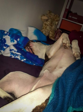 Spike est arrivé à la maison lundi. Un peu perdu (normal) Mais très vite il s'est senti à l'aise. Il est fûté. Obéissant. Gentil. Aucun problème avec notre chat, ni même notre poule. Adopté par nous. Adoptés par lui. Une belle surprise pour Fabienne