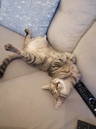 Youki est avec nous depuis 7 mois et c est 7 mois de pure bonheur ! C est un chat affectueux, intelligent, doux et c est un grand bavard ? Il est constamment avec moi ou que je sois. Il dort avec nous toute la nuit et si j ai le malheur de devoir me lever monsieur Youki se lèvera avec moi puis viendra se recoucher ensuite. Il me suis aux toilettes, dans la salle de bain. Il adore l eau qui coule. Il a très bon appétit et il a pris du poids. Il fait 3kg 170.