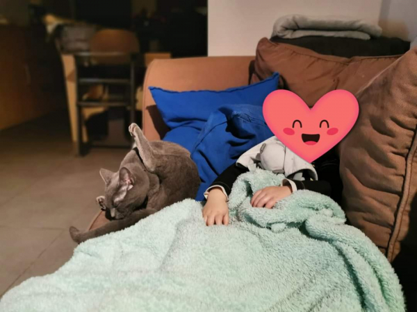 J'adore les caresses et je fais dodo avec mes humains sur... Le lit bien-sûr...