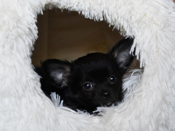 Rintintin découvre la vie de famille, il est adorable, il ne me lâche pas d'une semelle, joue avec le chat et les chiens, il mange bien, boit bien, fait ses besoins dans l'herbe ou sur son alèse, dort tranquillement dans son petit panier et tout ça comme un grand du haut de ses 11 semaines!