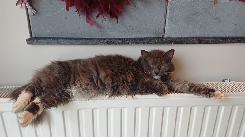 Encore un peu craintif avec ses nouveaux copains, Terreur et Zola, Opus a déjà bien pris ses marques dans la maison.