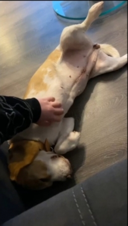 Suite à notre appel , j ai donné plein de nouvelles de doudou! Doudou va vraiment bien elle vieillit bien. Elle a super bien évolué, elle n a plus peur des autres chiens, mange super bien. C est une boule d amour. Je l’aime vraiment fort nous sommes inséparables. C est vraiment une belle relation qui s est construite petit à petit. J ai acheté une maison, elle vit maintenant dans une belle maison à côté d un bois à Spy. Elle a un jardin à elle, elle vit avec moi et deux colocs super chouettes Antoine et Julien. De plus, on a accueilli un deuxième chien de refuge Lilo , elles s’entendent supers bien, avec un petit chat qui s appelle Luna, et des poules :). Doudou vit toutes mes aventures avec mois Voici de super photos d elle à la maison avec les animaux ou en vacances avec moi