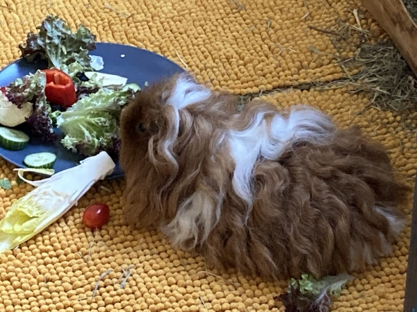 L'année a été un peu mouvementée pour moi.. j'ai malheureusement perdu ma copine mais j'ai deux nouveaux copains. Enfin surtout Souka qui est plus calme avec Flash, c'est parfois un peu tendu. Cela ne nous empêche pas de partager un coussin et une assiette de verdure. Maman dit qu'on est des vrais petits mecs: une minute on s'aime et la suivante on se dispute.