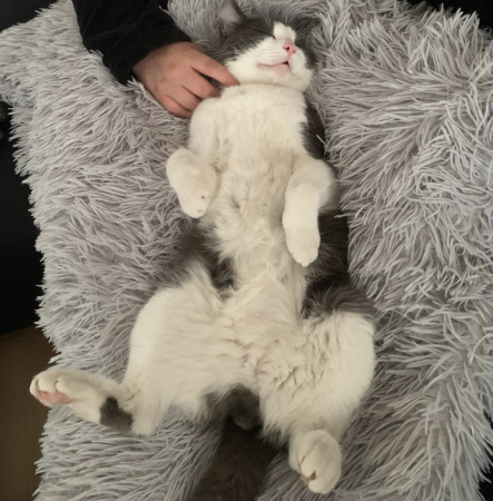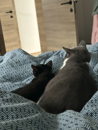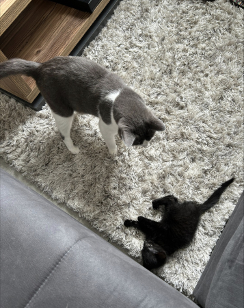 Voilà des nouvelles de Tommy, il mange super bien il est très câlin et il adore jouer il est très propre il a vraiment trouvé sa place à la maison et cerise sur le gâteau il chasse les araignées ! On s'entend vraiment très bien en une semaine c'est comme s'il avait toujours été ici, une jolie complicité !