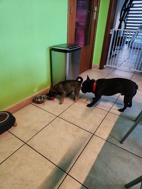 Voilà depuis bientôt 6 mois, je suis avec ma famille. Je joue beaucoup avec mon frère Taïko. Il est gentil mais il pète beaucoup. Dans ma maison, il y a beaucoup de place pour courir. Tout le monde est très gentil avec moi et prend bien soin de moi.