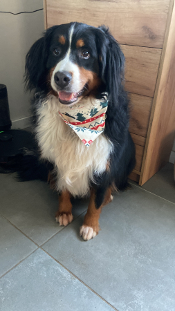 On est allé à la visite annuelle des vaccins, elle est en pleine forme, tout est parfait mais on doit faire attention à son poids, mademoiselle fait 50kg. Je pense que c'est une vraie bernoise :)