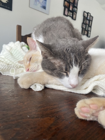 Altesse et Sam.. leur complicité est tellement belle à voir.. depuis l adoption Altesse s est beaucoup attachée au chien, elle le suit partout, elle court derrière lui.. elle ne voit que par lui :-)