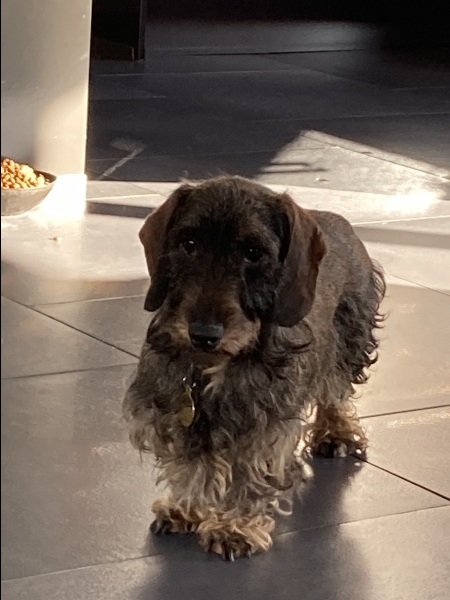 Comme je découvre la vie, je fais quelques bêtises de chiot comme voler les pantoufles mais maman dit que c'est normal. Elle dit aussi que je suis une vrai « teckelette »: têtue, très intelligente, gentille et très câline.