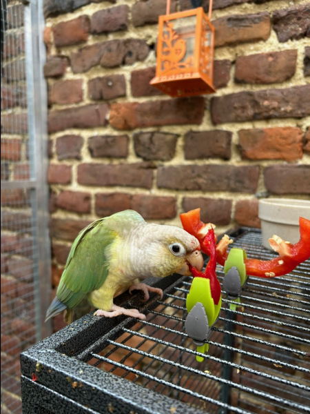 Huit mois après leur adoption, Naoki et Hakina, adoptées ensemble, vont super bien. Elles sont toujours très liées l'une à l'autre, ont pris confiance et visitent maintenant toute la maison ainsi que la volière extérieure attenante à la maison...quand il fait beau :-) Elles mangent de tout, légumes, fruits, mélange de graines équilibré sans tournesol. Elles sont aussi de plus en plus confiantes envers moi, mais restent très indépendantes, ce qui est le mieux pour elles. Elles ont des caractères très différents. Outre le fait que les deux sont fidèles aux caractéristiques de leur espèces (joueuses, curieuses, intelligentes), Naoki est douce et posée alors que Hakina est une petite rebelle un peu "caractérielle". Elles se complètent bien. En conclusion...que du bonheur, et je suis très heureuse de les voir s'épanouir.