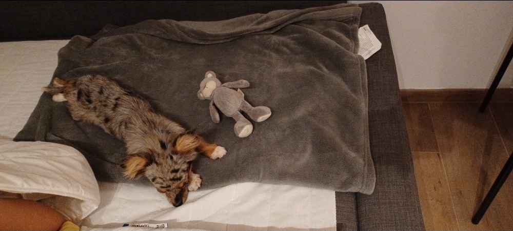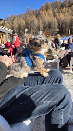 Il reste très craintif en promenade mais dans l'ensemble c'est un super petit chien plein d'amour et de vie.