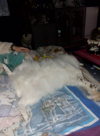 J'ai oublié d'envoyer celle-ci qui est si drôle! en fait,Yuri va régulièrement se faire toiletter,et voici la dernière photo prise après son toilettage.
