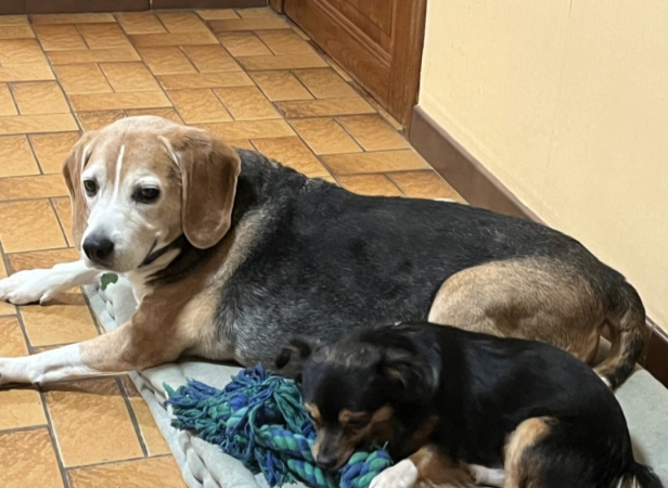 Tout commence il y a 6 ans. À la recherche d'un compagnon pour mon chien Junior, je croise la route de Milo amené lors de mon départ du refuge. Ce fût le coup de coeur pour ce petit chien si affectueux et en demande d'amour. Nous avons pris le temps de lui apprendre la propreté et chacun a apporté à l'autre le bonheur qu'il lui manquait. Ensuite, fin 2023 nous apprenons la terrible nouvelle que Junior mon beagle va mourir. Cela va faire un terrible vide mais je pense d'abord à Milo qui va perdre son meilleur ami. Je décide donc de retourner au refuge pour un chien bien particulier. Les bénévoles me disent qu'il ne s'entend pas avec les autres chiens mais qu'une terrible saisie de 113 chiens vient d'être réalisée 2 jours avant. Mon regard est directement attiré sur un seul chien, Charly. 2 mois de patience. Chaque semaine des visites qui crée se lien de confiance si particulier entre chien qui ne connaît rien et n'a jamais reçu d'affection. junior a pu le connaître 3 mois. Ensuite en s'éteignant la peine fut présente pour tous mais Charly et Milo se sont liés d'une magnifique amitié. Milo a pris une certaine indépendance vis à vis de moi et a appris à jouer. Charly a pris les attitudes de Junior pour protéger sa maison mais il a appris l'amour, la joie et la tendresse. C'est si merveilleux de rendre des animaux heureux mais qui nous apportent tant de bonheur en retour. Jamais plus je n'achèterai un chien. Ce refuge si particulier dédié si bien au bien être des petits protégés m'a fait comprendre que dans leur malheurs ces animaux vont commencer une nouvelle vie, une vie qu'ils méritent. Entourée d'amour avec des maîtres qui s'engagent à leur apporter tout ce dont ils ont besoin.