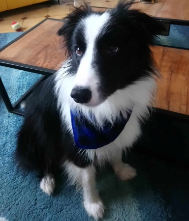 Il était fort craintif au début et a encore peur de certains bruits et a des difficultés à se promener tranquillement mais il apprend très vite, il lui faudra juste un peu de temps.