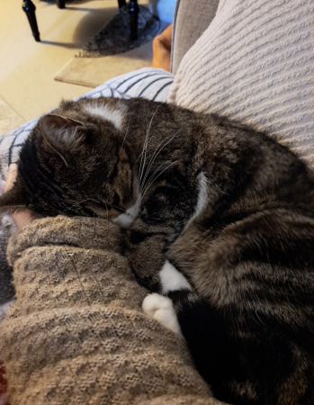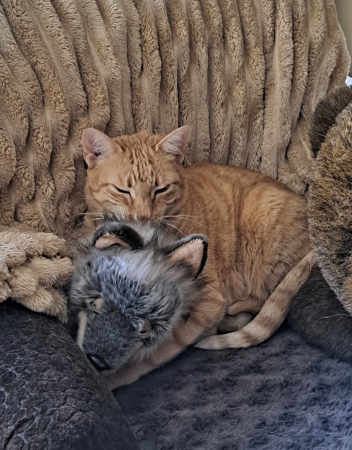Voici quelques nouvelles de la petite Izis. Elle va très bien. Elle a pris 500 gr depuis son arrivée à la maison. C'est un petit chat facile, sociable et très câlin. .