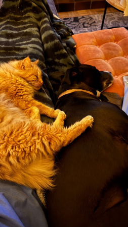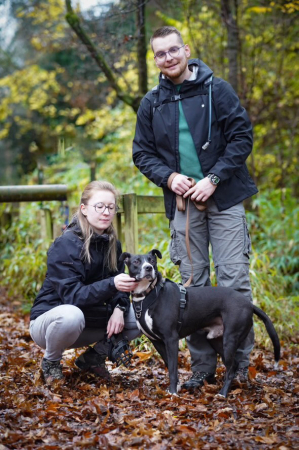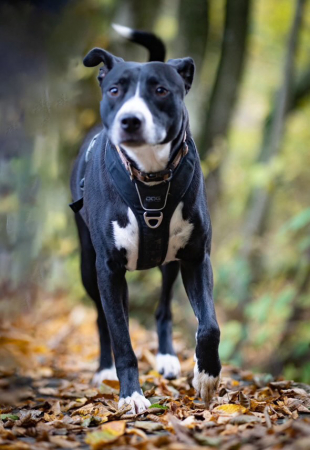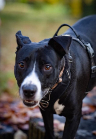 Voici Gus anciennement Pinceau bientôt 1 an après son adoption. Beaucoup de travail effectué au niveau dressage et sociabilisation avec les chiens et les humains. C'est devenu un chien bien dans ses pattounes! :)