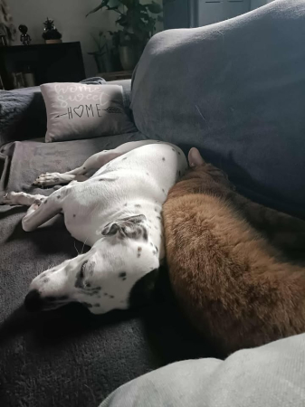 Voilà des nouvelles de Mia . Tout va bien elle prend ses marques avec sa nouvelle grande famille. Elle est très curieuse et a de moins en moins peur