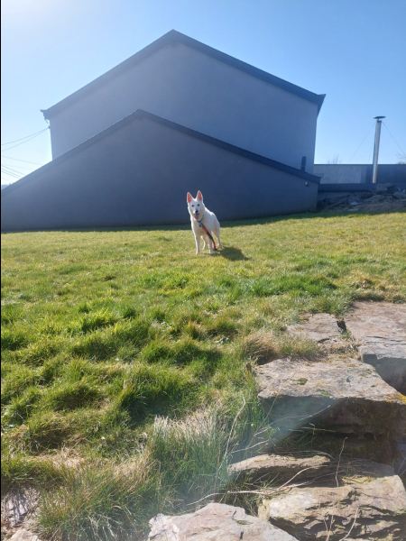 Je vous transmets quelques photos de Zaraya qui répond désormais au nom de Belle. Mon papa l'a adoptée il y a deux semaines. Ils se découvrent encore mais ils sont déjà inséparables.