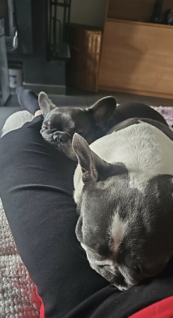Il s entend très bien avec la bouledogue de mon compagnon, il y a 1 an d écart entre eux et sont déjà assez complices.