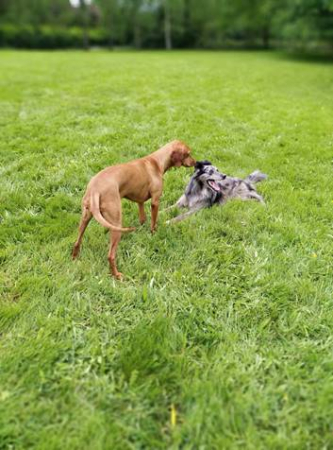 Pour vaincre ses peurs, la meilleure thérapie: une longue promenade quotidienne qui le déstresse. Milo est un compagnon formidable lors de ces sorties, il est curieux, gai et obéissant. Dans le jardin, il joue à la balle ( cette même balle qui le terrifiait quand il est arrivé ).