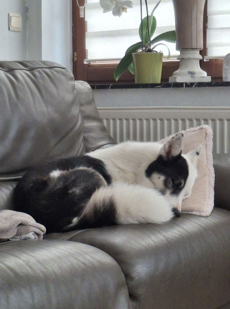 Sa surdité ne pose pas de problème, elle réagit toujours bien, avec douceur, quand on la réveille ou la touche par l'arrière.