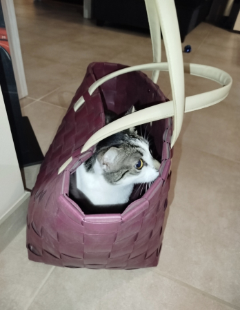 Mais elle est aussi très câline elle adore faire des bisous et elle commence à bien s'arranger avec le chat qui vit aussi chez nous.
