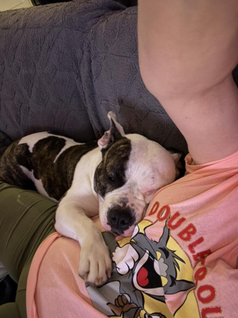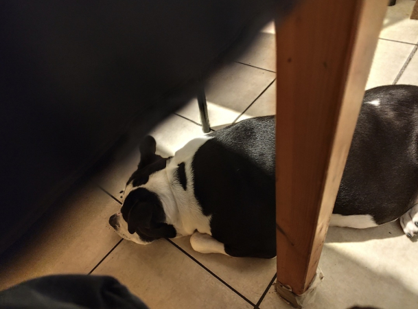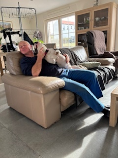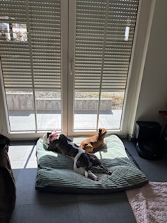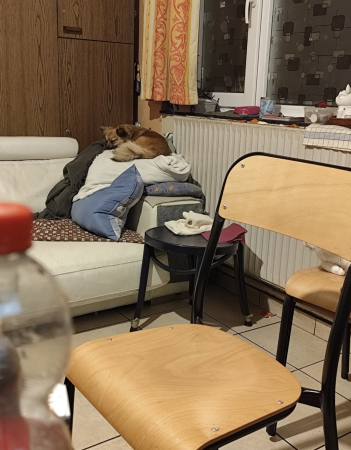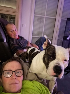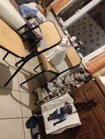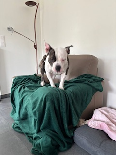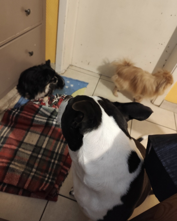 Bientôt 3 mois à la maison  je suis la reine de la maison avec mon papa,  heureusement, maman met des stops. J'ai bien repris du poids, je suis à 25 kg Mon défaut : n aime pas les chats et les moutons
