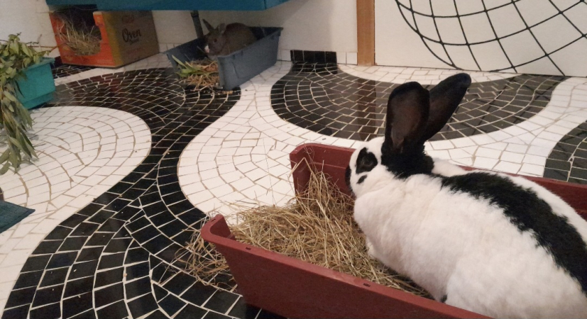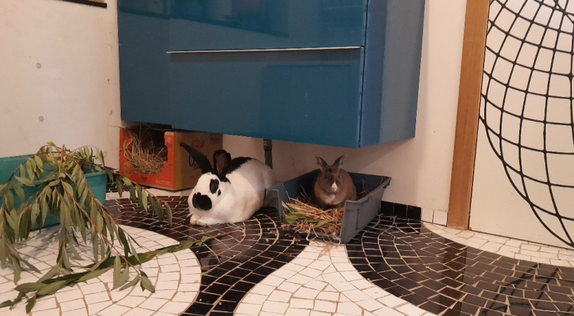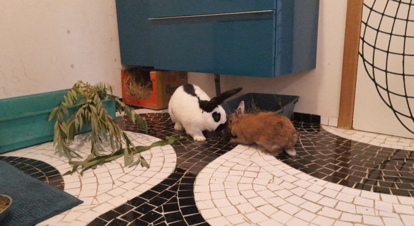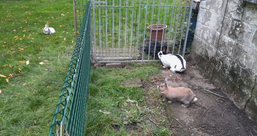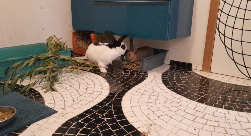 Rebelle est un peu plus timide ici qu'au refuge. Ai dû les sortir de leur bac pour qu'ils se décident à se re-rencontrer.