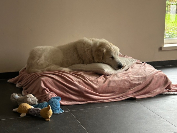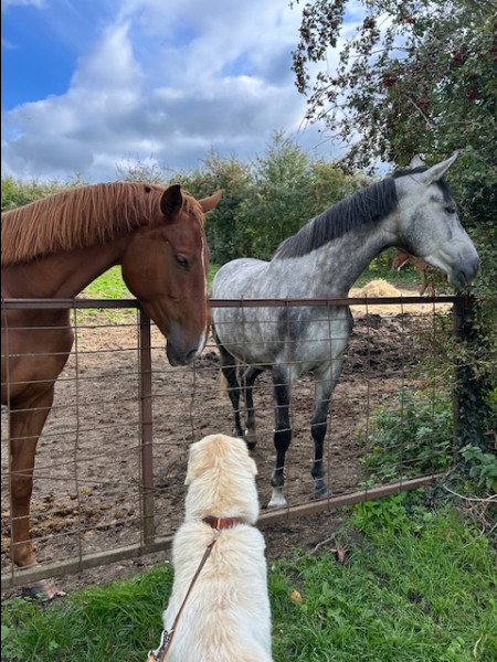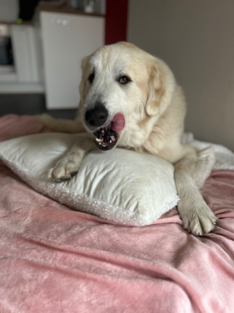 Elle adore aussi aller chez papy et Mamy quand nous travaillons trop longtemps … Elle aime les balades et a déjà rencontré tous les copains chiens, chats, moutons, biquettes, poules et chevaux du quartier … Elle a découvert le fromage kiri  et le confort d’un super matelas mémoire de forme orthopédique….