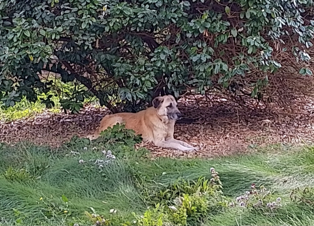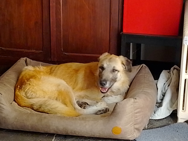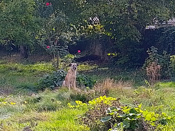 Voici quelques photos d’Harpo découvrant le jardin. C’est toujours le round d’observation entre les 2 chiens. Harpo marche bien en laisse lors des balades même si il n’est pas encore relax. Il a toujours les oreilles collées. A la maison il a de suite trouvé sa place dans son panier. Les approches restent toujours délicates. Mais il commence à se détendre.
