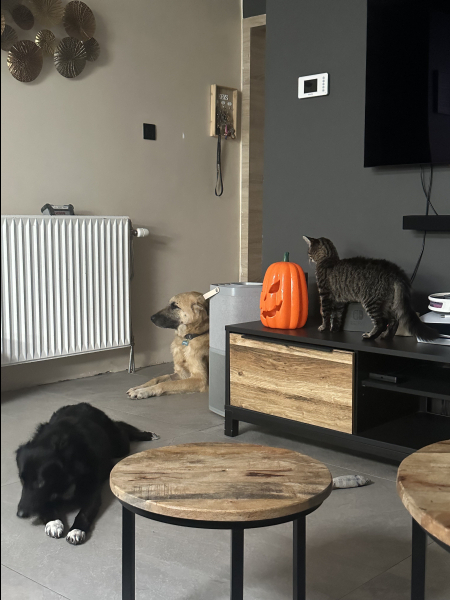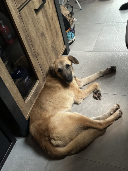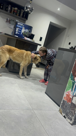 Il s’adapte très bien à sa nouvelle vie. Adore passer du temps au jardin, il a eu quelque petit accident de la nuit. Et tout est déjà rentré dans l’ordre. Il est propre, sage, ne détruit rien, il est très respectueux. Un amour de chien. Il reste un peu peureux mais s’améliore de jour en jour.