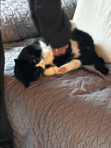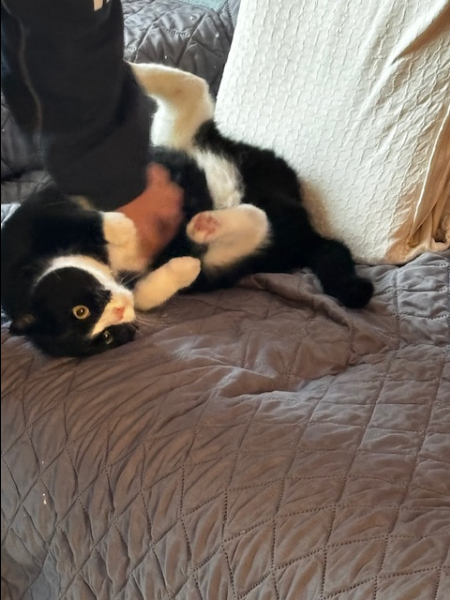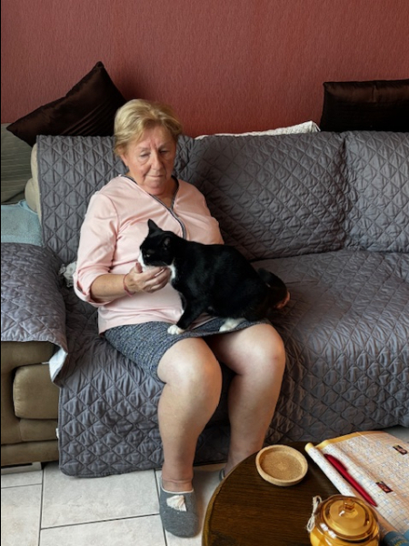 Seule petite crainte au début : elle pleurait (criait très fort et beaucoup). C'est sans doute parce qu'elle a toujours eu l'habitude d'être accompagnée d'autres chats. Cela se calme petit à petit et devient de moins en moins fréquent.