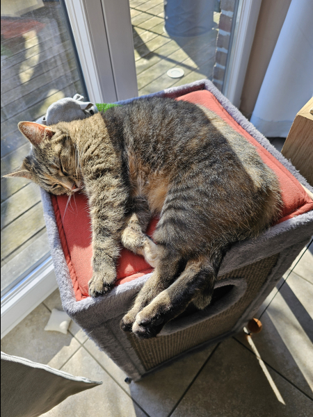 Elle prend le soleil calmement. Elle se sent vraiment chez elle et s'habitue bien à nous. Elle est adorable.