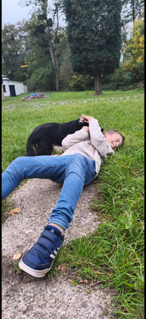 Voici quelques photos d'Ollie pour vous donner des nouvelles. Elle s'est parfaitement acclimatée et c'est un chien merveilleux. Merci pour cette chance !Â
