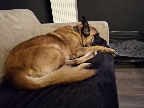 Une semaine après son arrivée à la maison, Sven a bien pris ses marques et est super copain avec Hadès. On se balade, on travaille, on joue, on mastique... je pense que sa nouvelle vie lui plaît ! Merci pour votre travail !