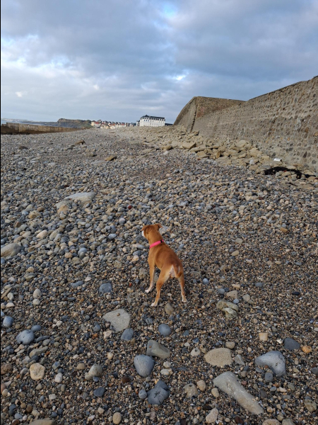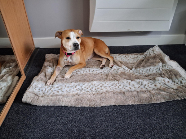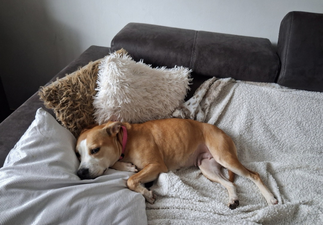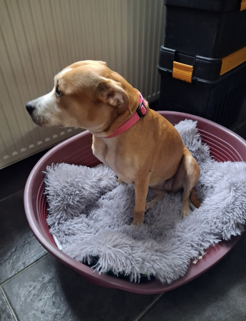 Elle a très vite fait la différence entre le panier et le divan , avec une prédilection -bien sûr- pour le divan. Elle est très demandeuse de câlins qui la rassurent . Un peu de chambard la première nuit. Les promenades quotidiennes , elle adore ainsi que le jardin où