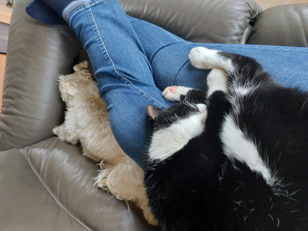 Elle est très sociable et s'entend avec tout le monde; la rencontre avec mon chat s'est parfaitement bien déroulée et ils cohabitent maintenant comme s'ils avaient toujours vécu ensemble.