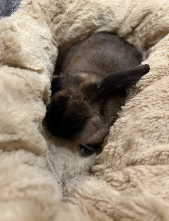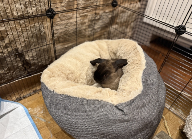 Pimpin adore son nouveau panier dans lequel elle se blottit. Cassonade est d’ailleurs un peu jaloux mais complètement amoureux: il lui fait même des bisous.
