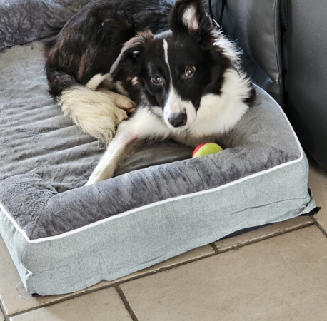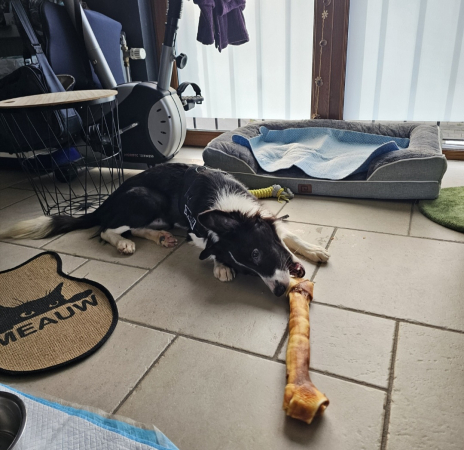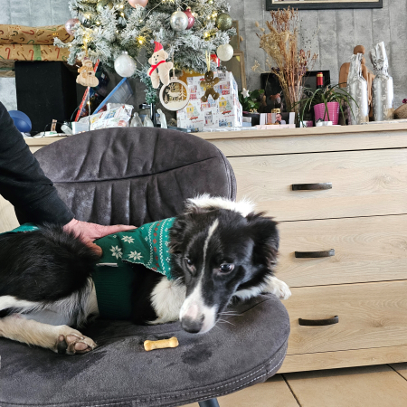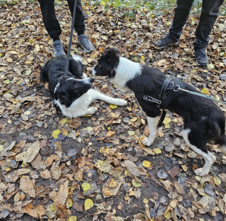 Je voulais vous donner des nouvelles d'aïkido. Il va bien, est adorable, très peureux parfois lors des promenades face aux bruits ou a la vitesse..enfants jouant football..jogueur etc. Il s'alimente bien..pour la propreté il y aura du travail..nous le sortons toutes les 2h..mais la nuit est trop longue sûrement..7h..J'essaie de le ressortir à minuit ..et ce matin 8h juste un pipi sur l'alèse..aujourd'hui longue promenade dans les bois..oû il a même rencontré un confrère..il adore tous les chiens.Tout le monde l'adore..Encore merci de nous avoir fait confiance. Je joints quelque photos.