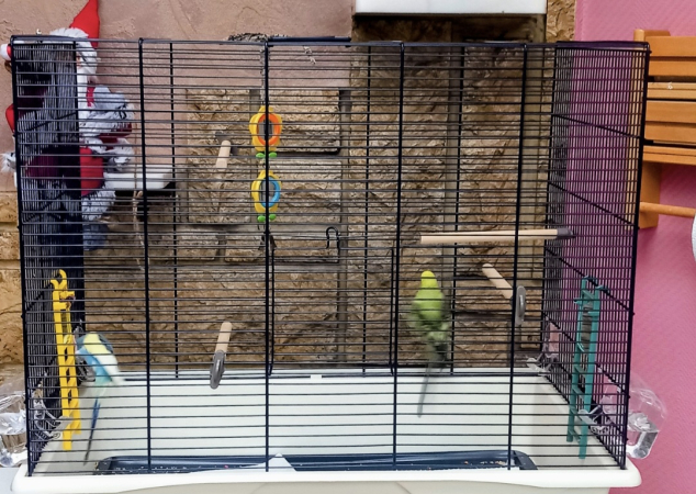 Voici des nouvelles de nos deux petites perruches . Elles s’adaptent bien toutes les deux à leur nouvelle maison et sont vraiment trop mimi ..