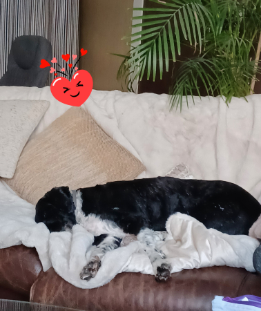 Hortense s'habitue très bien et son stress diminue chaque jour. Elle est très gentille, adore les calins et les balades dans le bois où elle rencontre de nombreux copains. Elle apprécie de plus en plus sa nouvelle vie :-) Je vous souhaite un joyeux Noël.