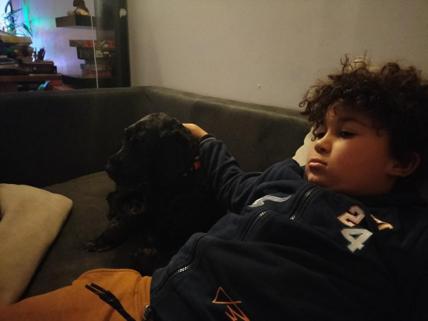 Elle va bien, il nous faudra encore du temps pour qu'elle ait moins peur... De l'extérieur, d'une porte qui s'ouvre, des bruits du