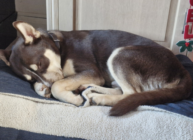 Voici les nouvelles de notre Aiko : il est extrêmement câlin, propre et calme tout en étant très joueur.